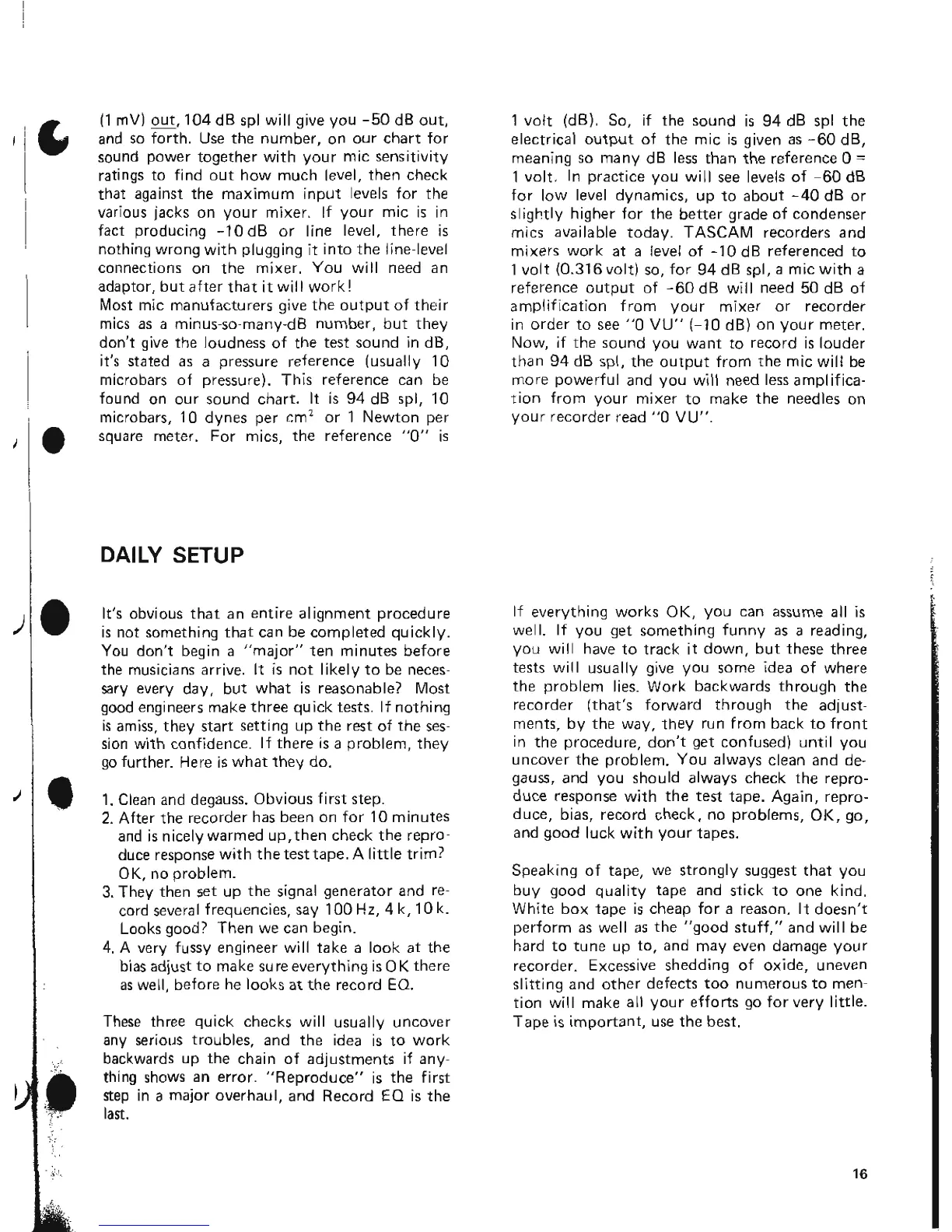Tascam 38 - Daily Setup