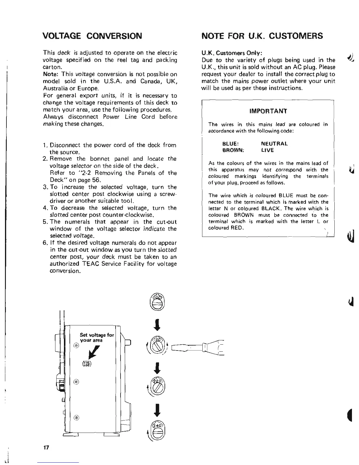 Tascam 38 - Voltage Conversion; Note for U.K. Customers