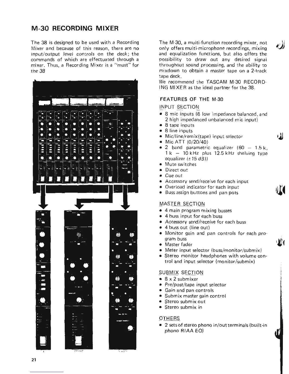 Tascam 38 - M-30 Recording Mixer Features Overview; M-30 Input Section Capabilities; M-30 Master and Submix Sections