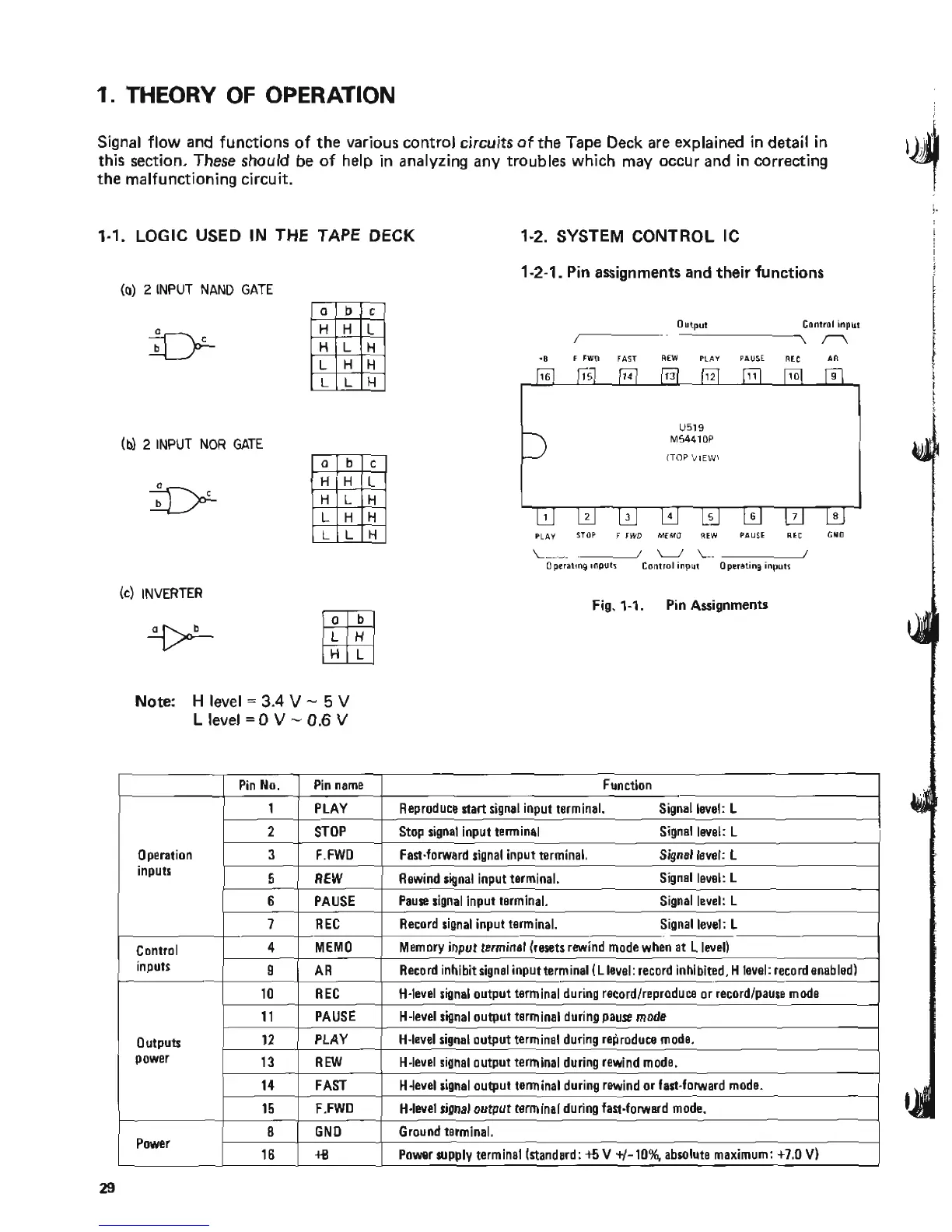 Tascam 38 - THEORY OF OPERATION - Logic and Control IC; System Control IC Pin Assignments