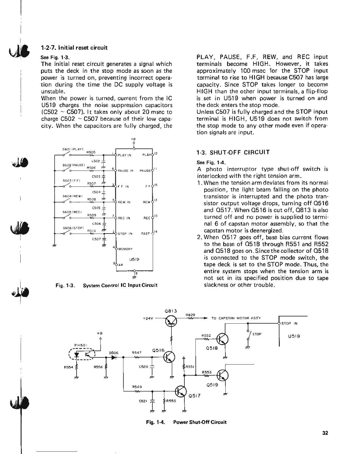 Tascam 38 - Initial Reset Circuit; System Control IC Input Circuit; Power Shut-Off Circuit