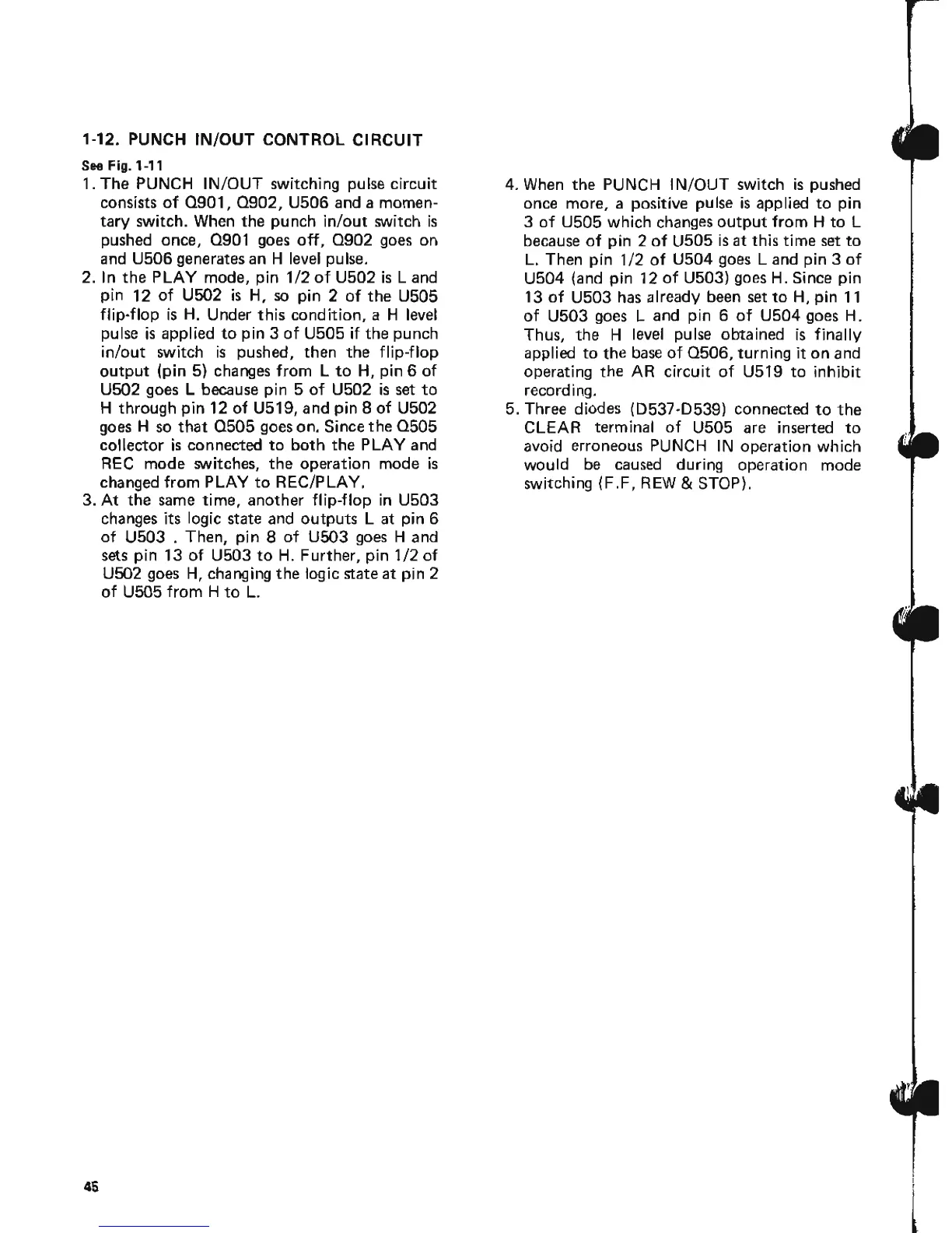 Tascam 38 - Punch In;Out Control Circuit Operation; Punch In;Out Control Circuit Details