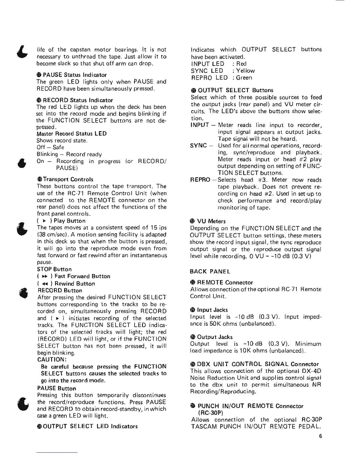 Tascam 38 - Operational Controls and Indicators; Transport Controls and Indicators