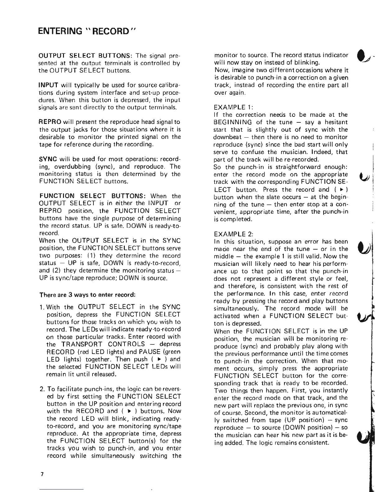 Tascam 38 - Entering Record Mode; Using Output and Function Select Buttons; Punch-In Recording Techniques