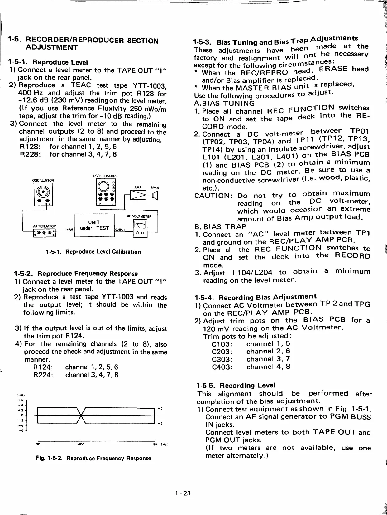 Tascam 388 Studio 8 - Recorder;Reproducer Section Adjustment; Recording Blas Adjustment; Reproduce Frequency Response; Reproduce Level