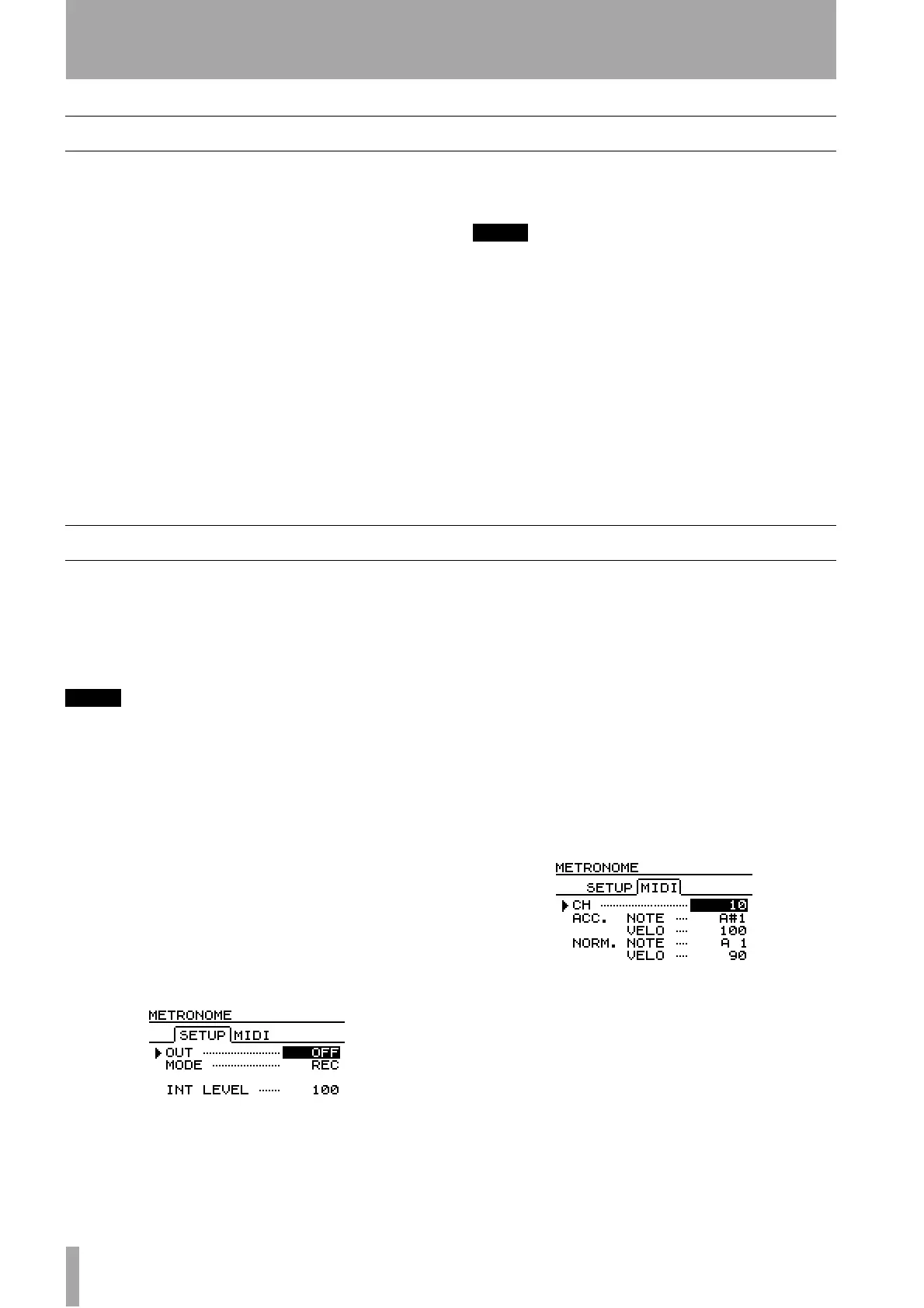 INT LEVEL Sets the level of the metronome when