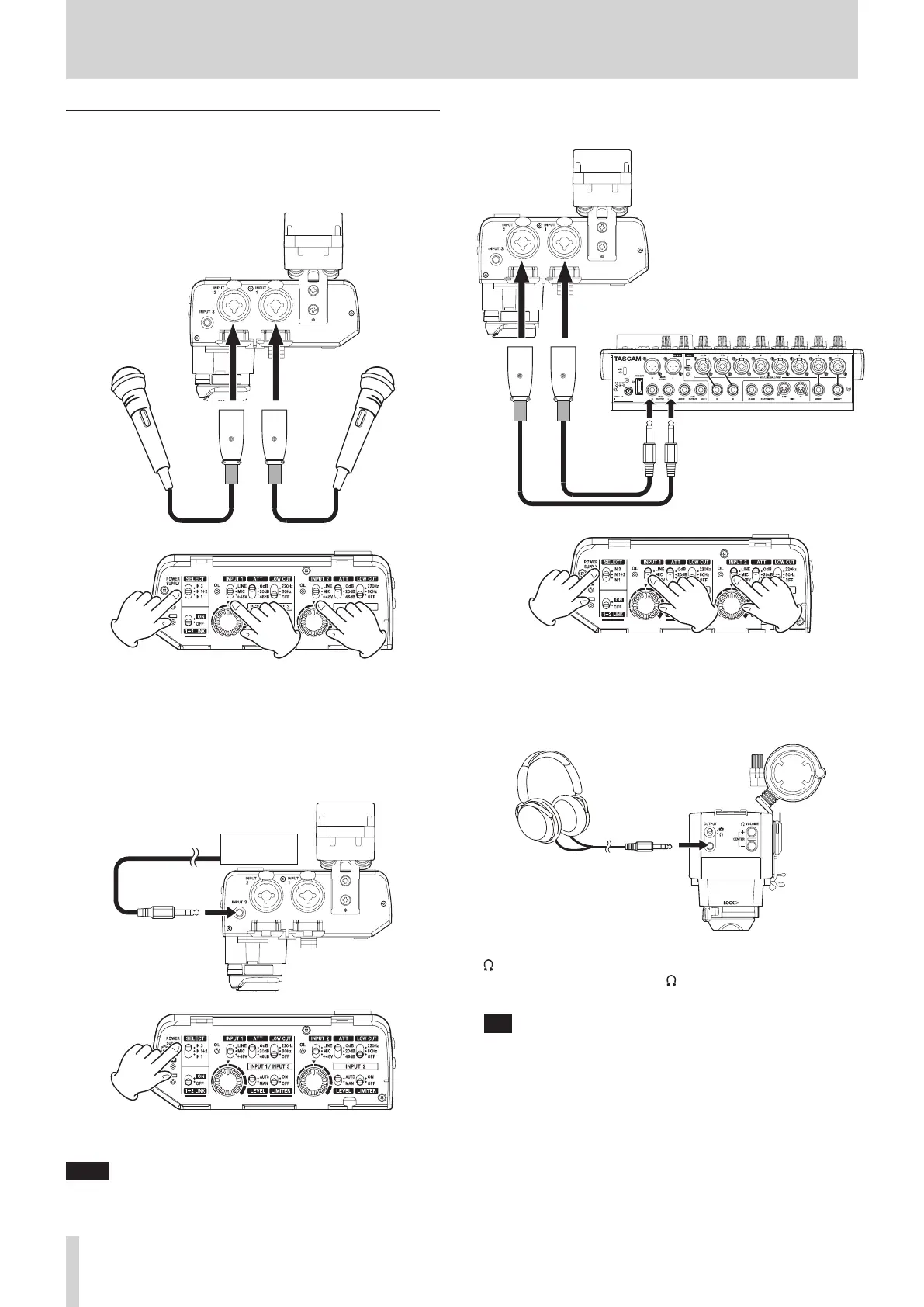 When using mics that require phantom power, set the INPUT 1