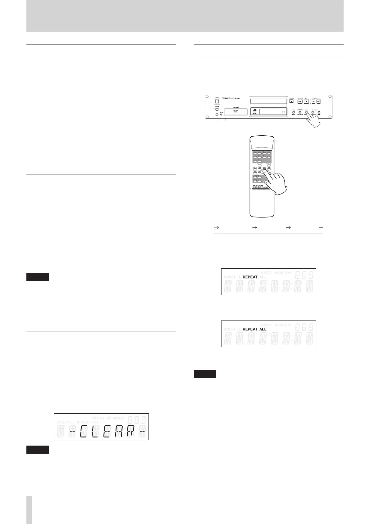 Press the main unit REPEAT [PITCH ON/OFF] button or remote