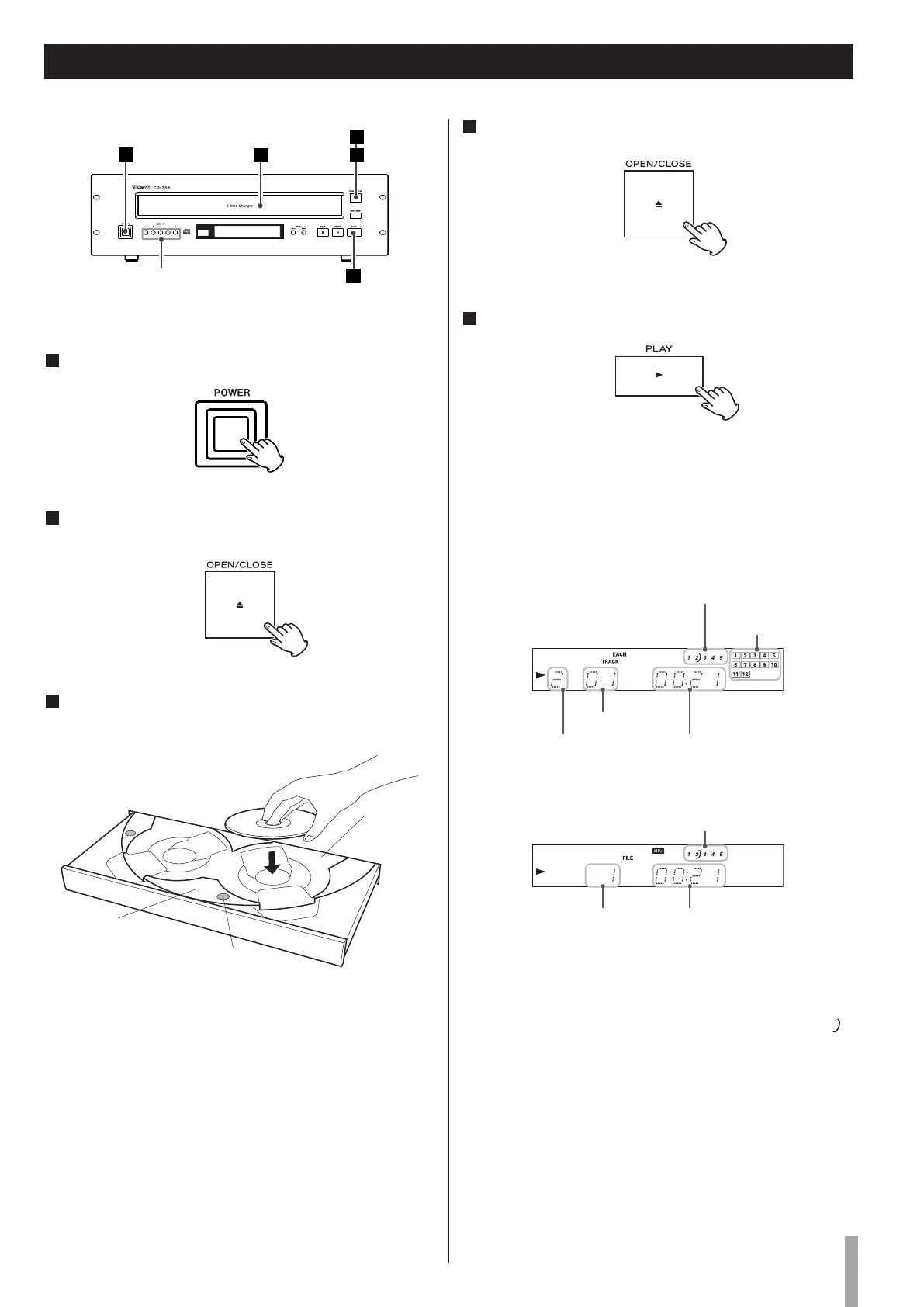 < To place a disc on the hidden tray, press the DISC SKIP button.