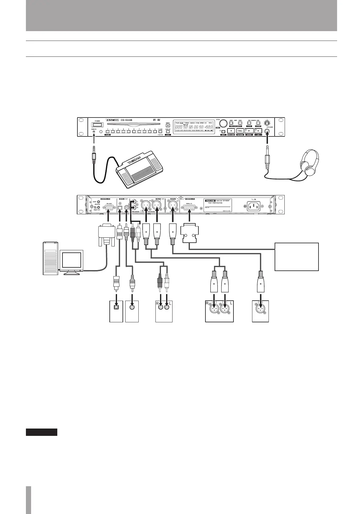 The illustration below shows an example of connecting other equipment with a CD-500B.