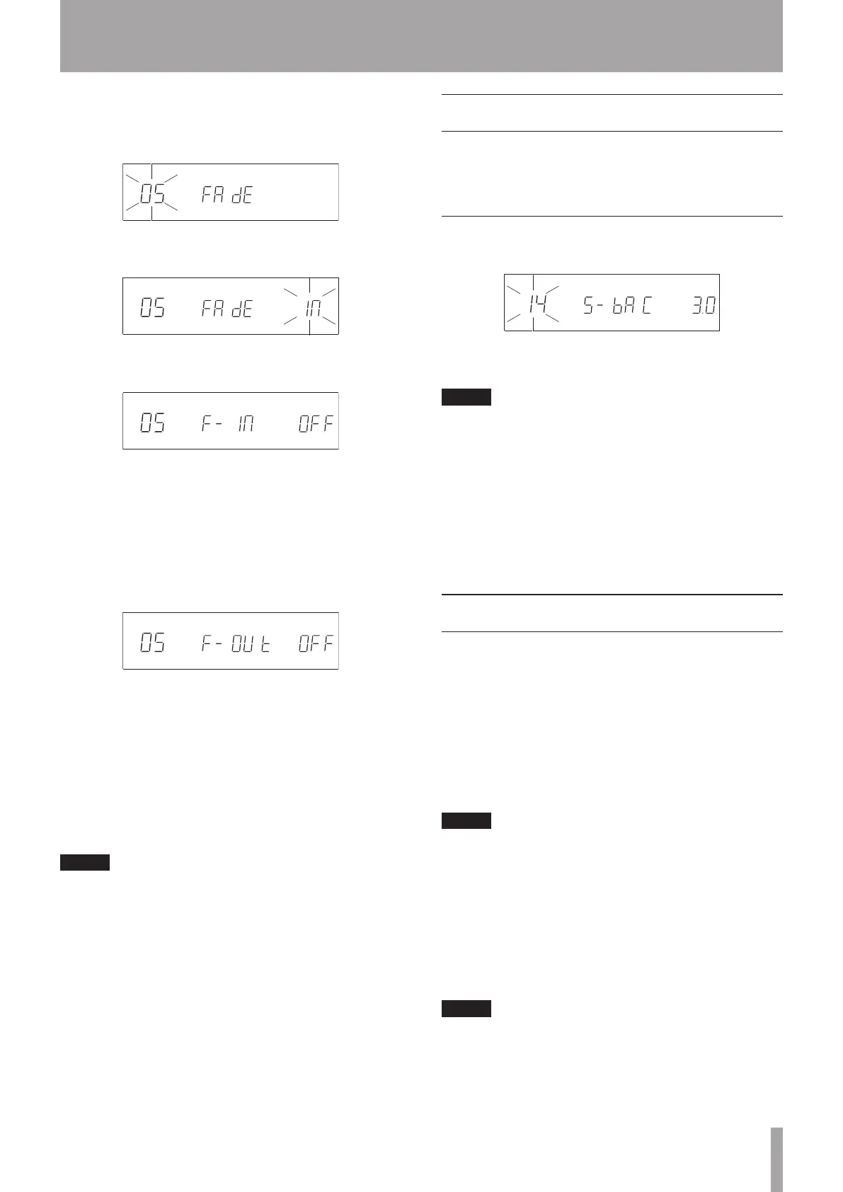 To set only the fade out time, in fade in/out setting