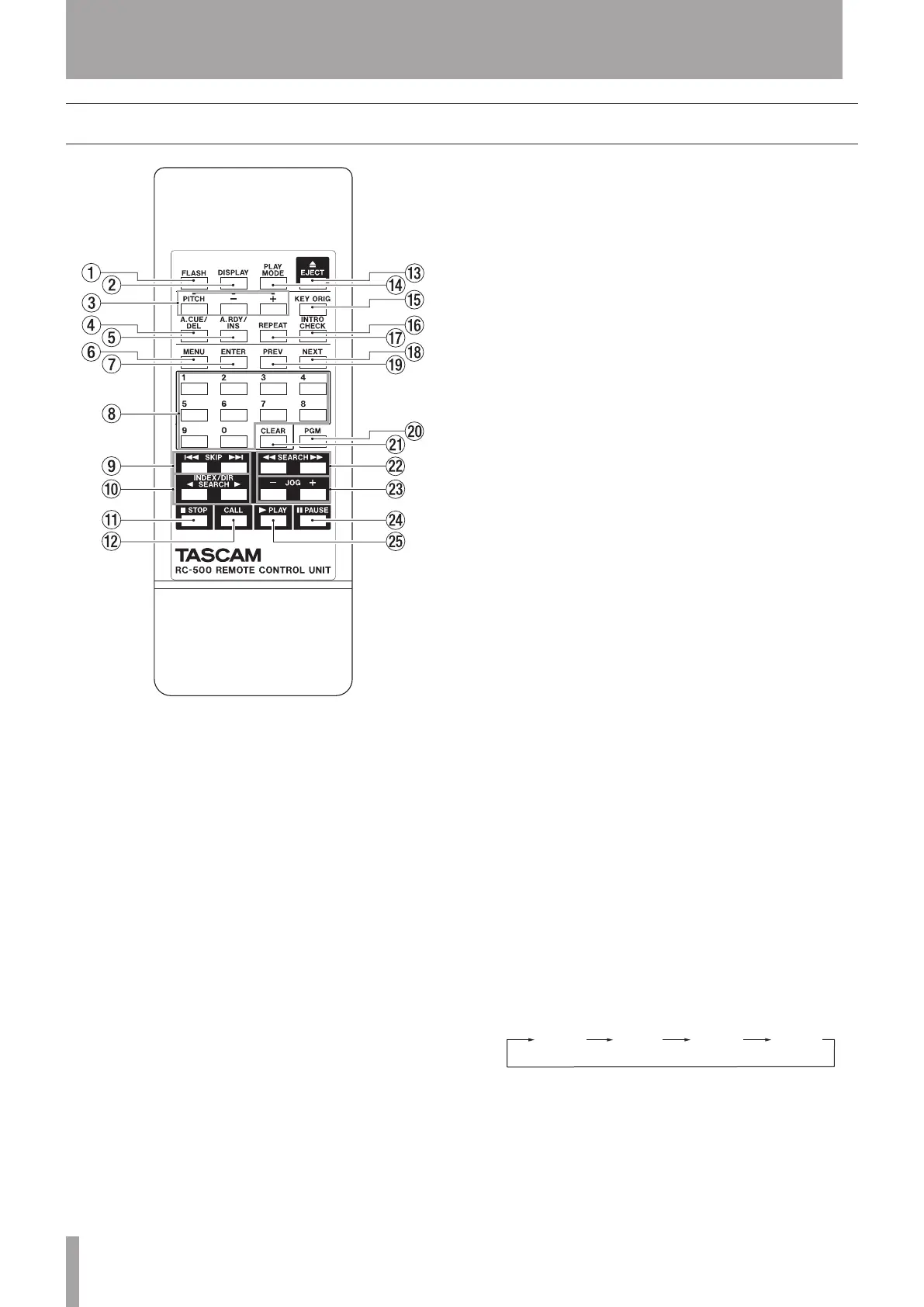 Wireless remote control (TASCAM RC-500)