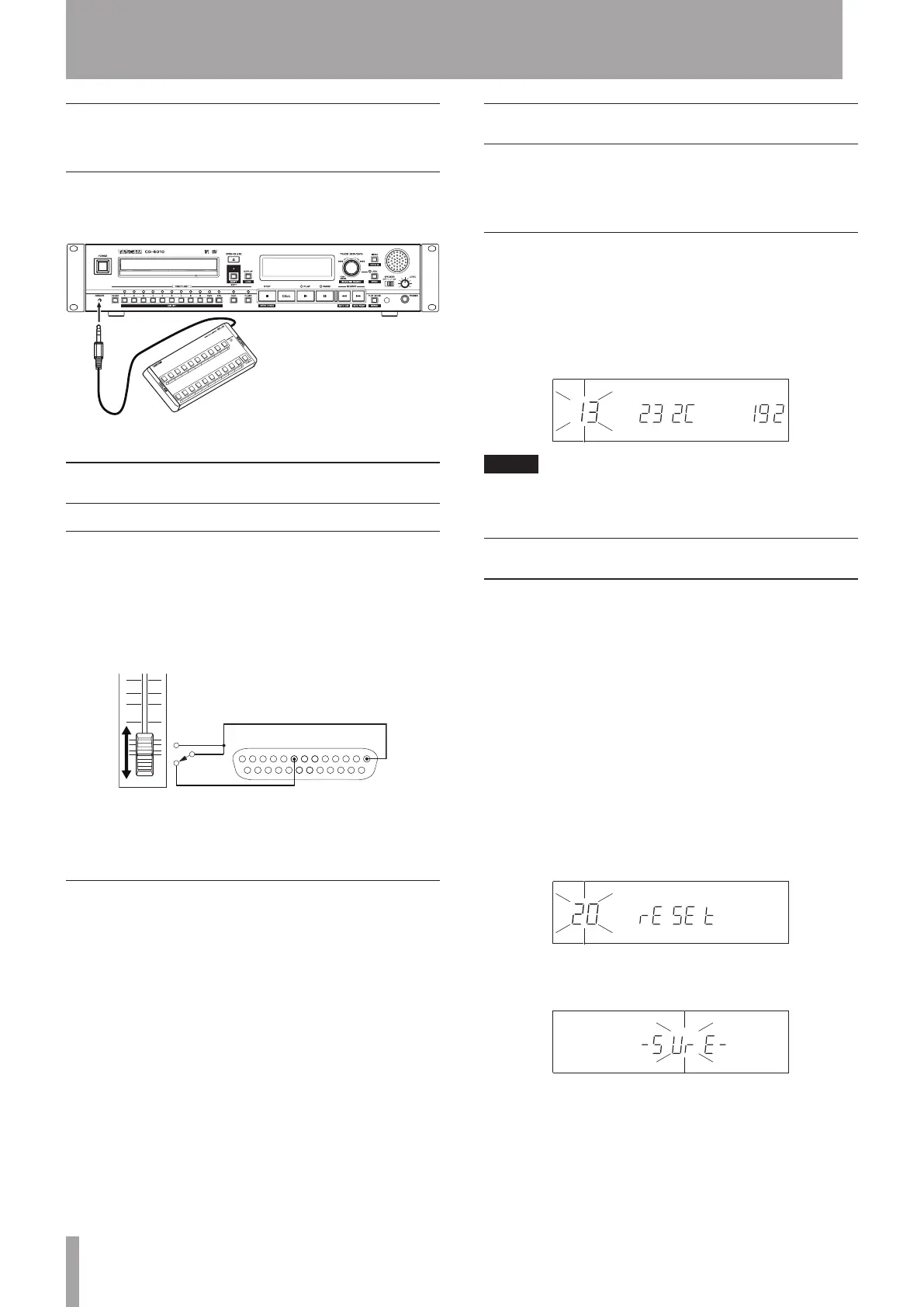 You can connect a TASCAM RC-20 direct play remote (sold