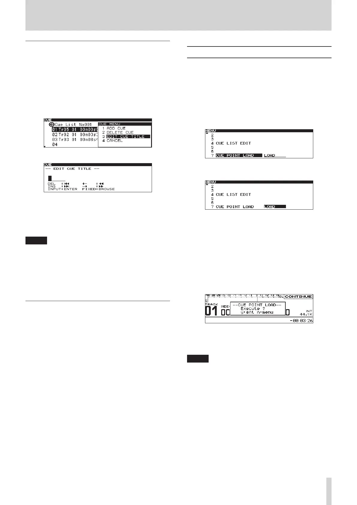 8. Edit the cue point name. See "Editing text" below for