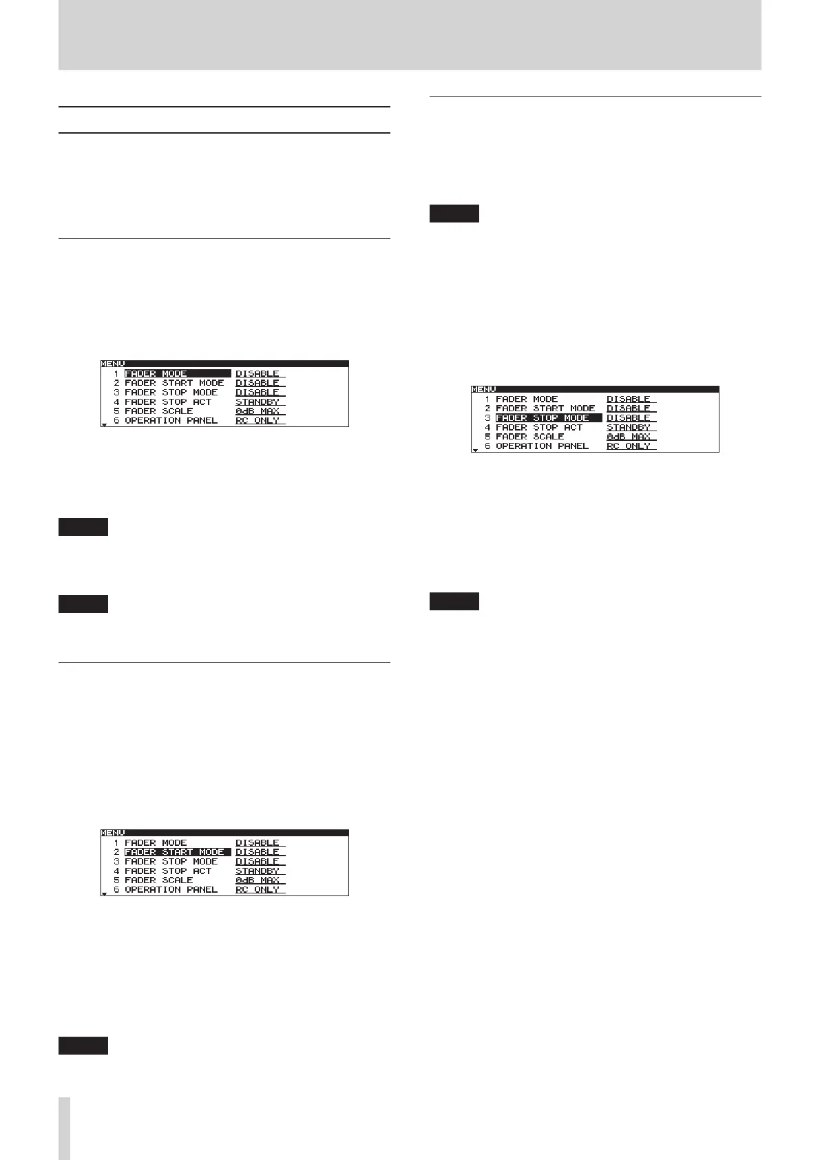 If you set both the FADER START MODE and FADER STOP MODE