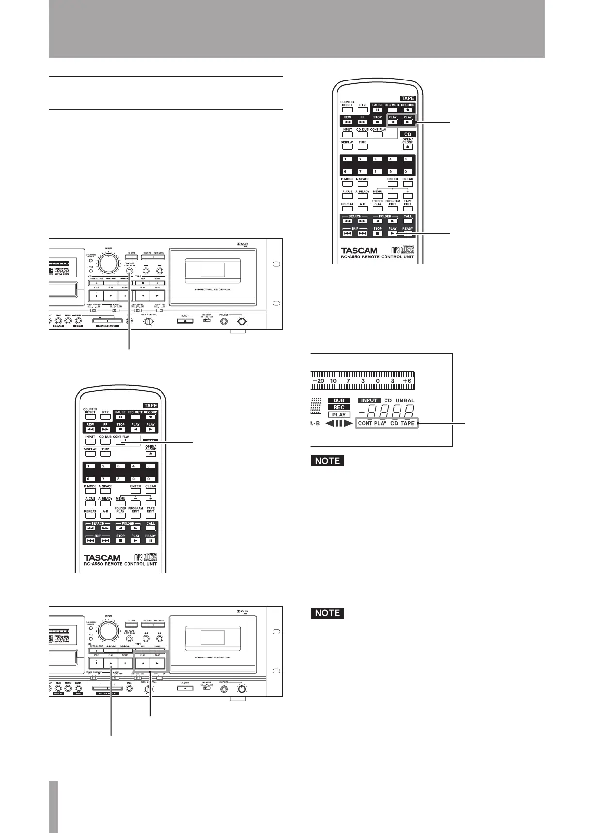 1 Press the CD-TAPE CONT PLAY key on the main unit