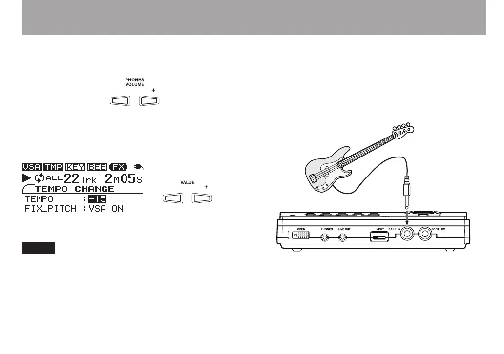¶ CURSOR key on the TEMPO CHANGE screen to select