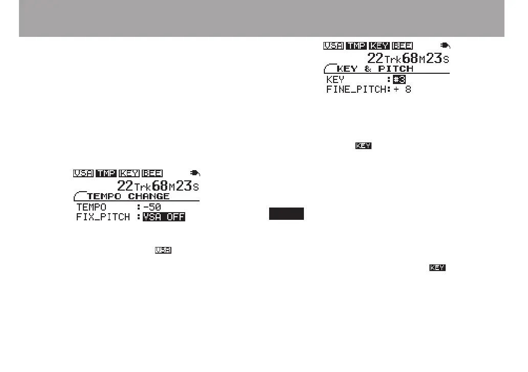 playback pitch and the display icon appears in inverse.