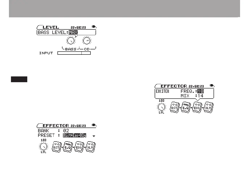 PRESET, the EFFECTOR screen also shows the LVL (level)