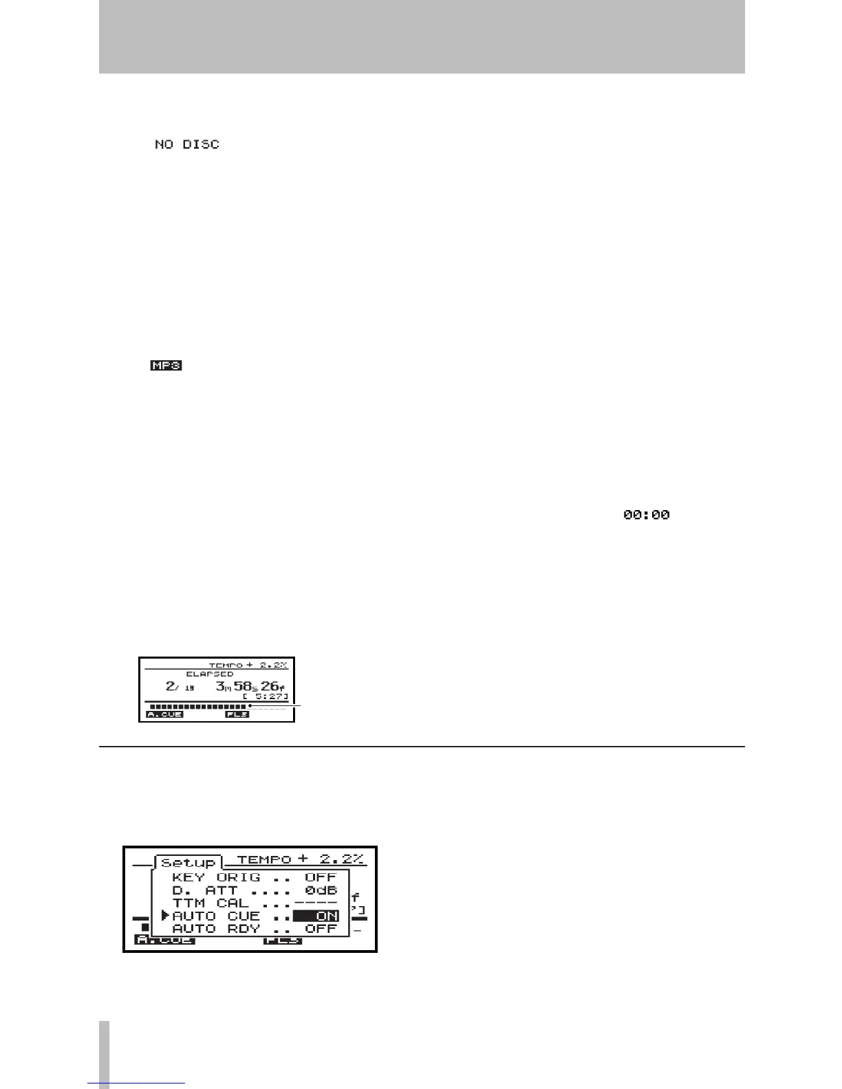 MP3 playback or when no disc is loaded.