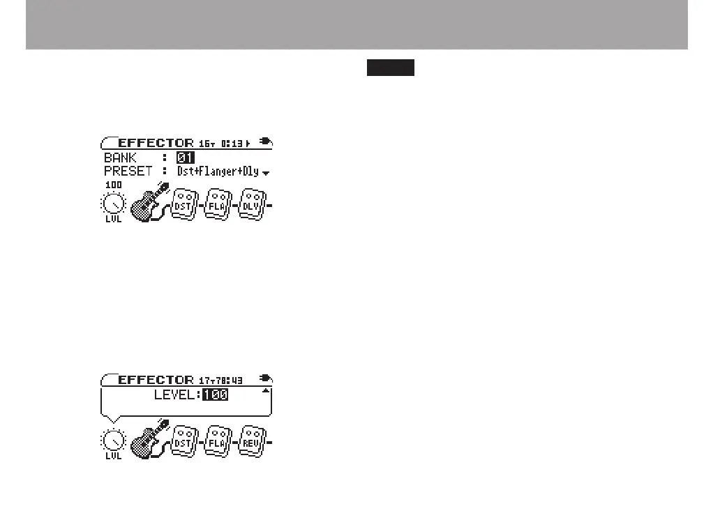 to open the LEVEL screen. Press the right CURSOR key (¥)