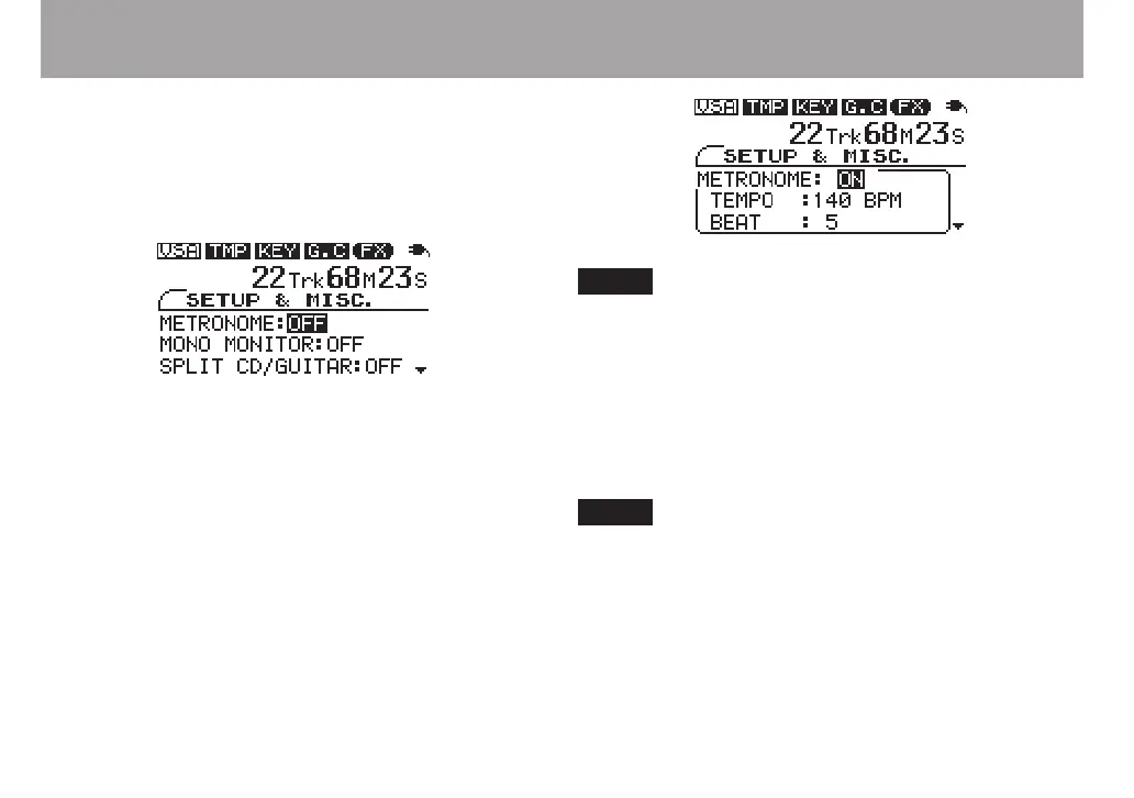 3 Use the VALUE (+) key to turn it ON. The metronome