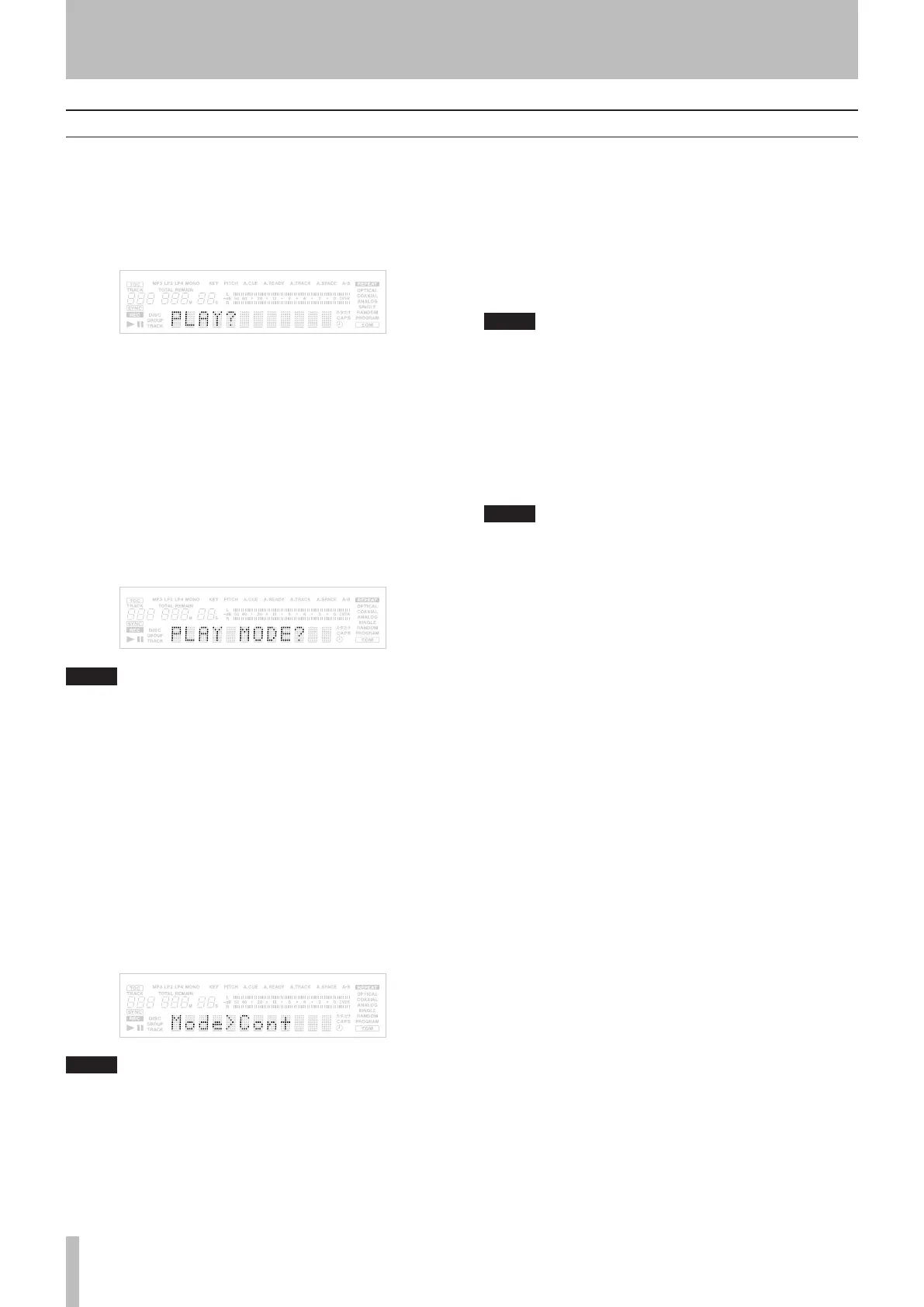 appear. If the sub-menu PLAY MODE is selected, the