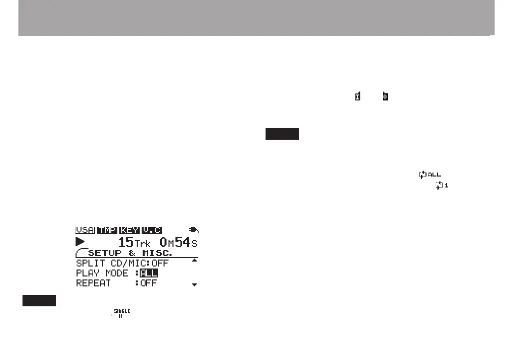 all tracks (ALL play mode) or the current track (SINGLE play