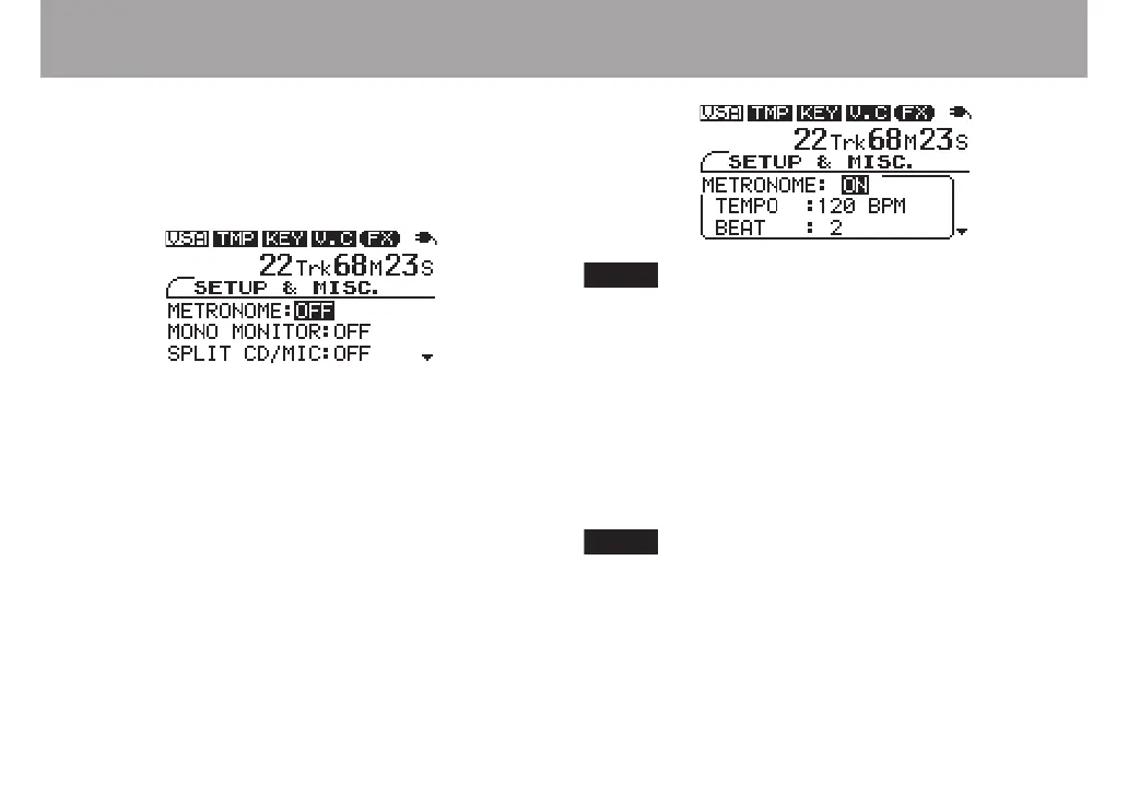 3 Use the VALUE (+) key to turn it ON. The metronome