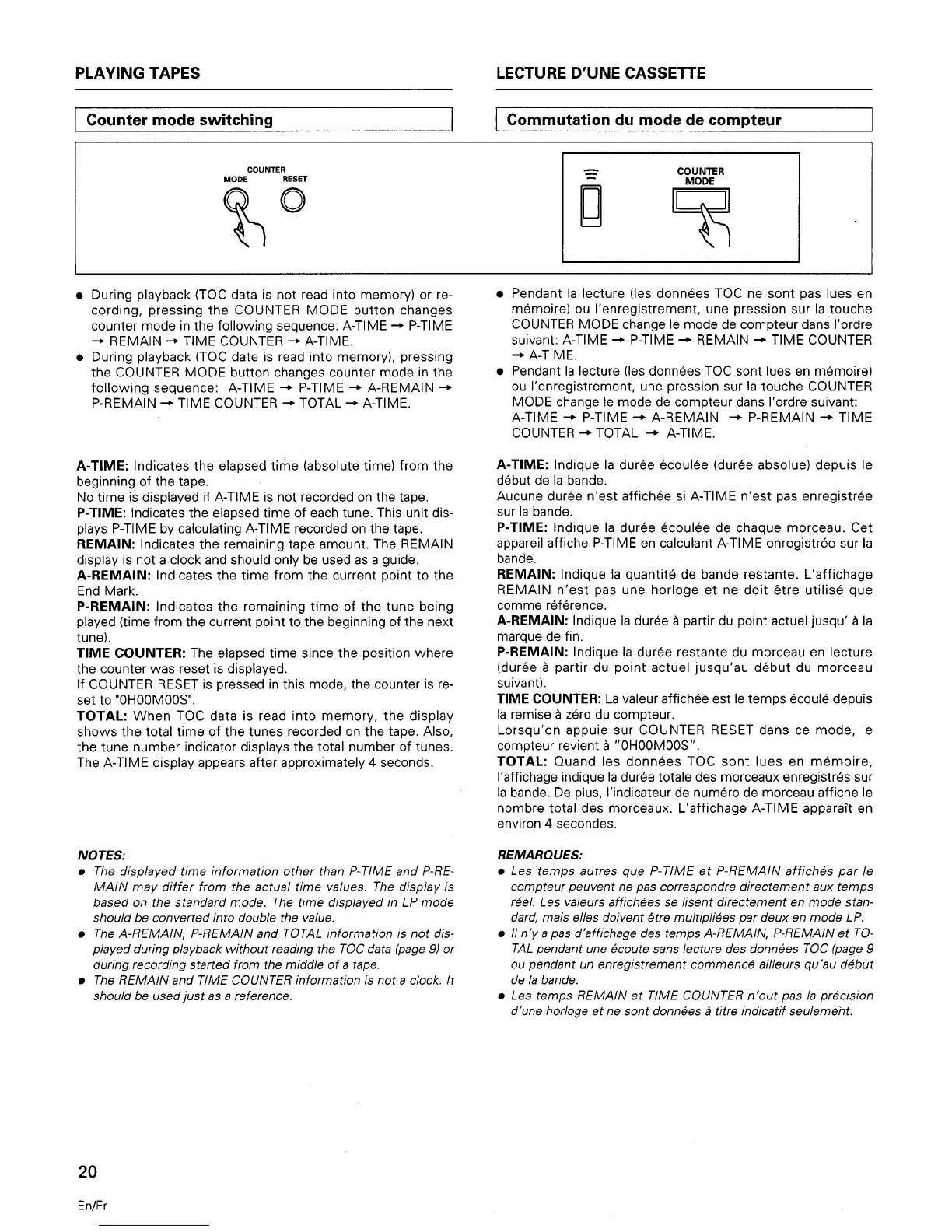 Tascam DA-20 - Counter Modes and Tune Selection