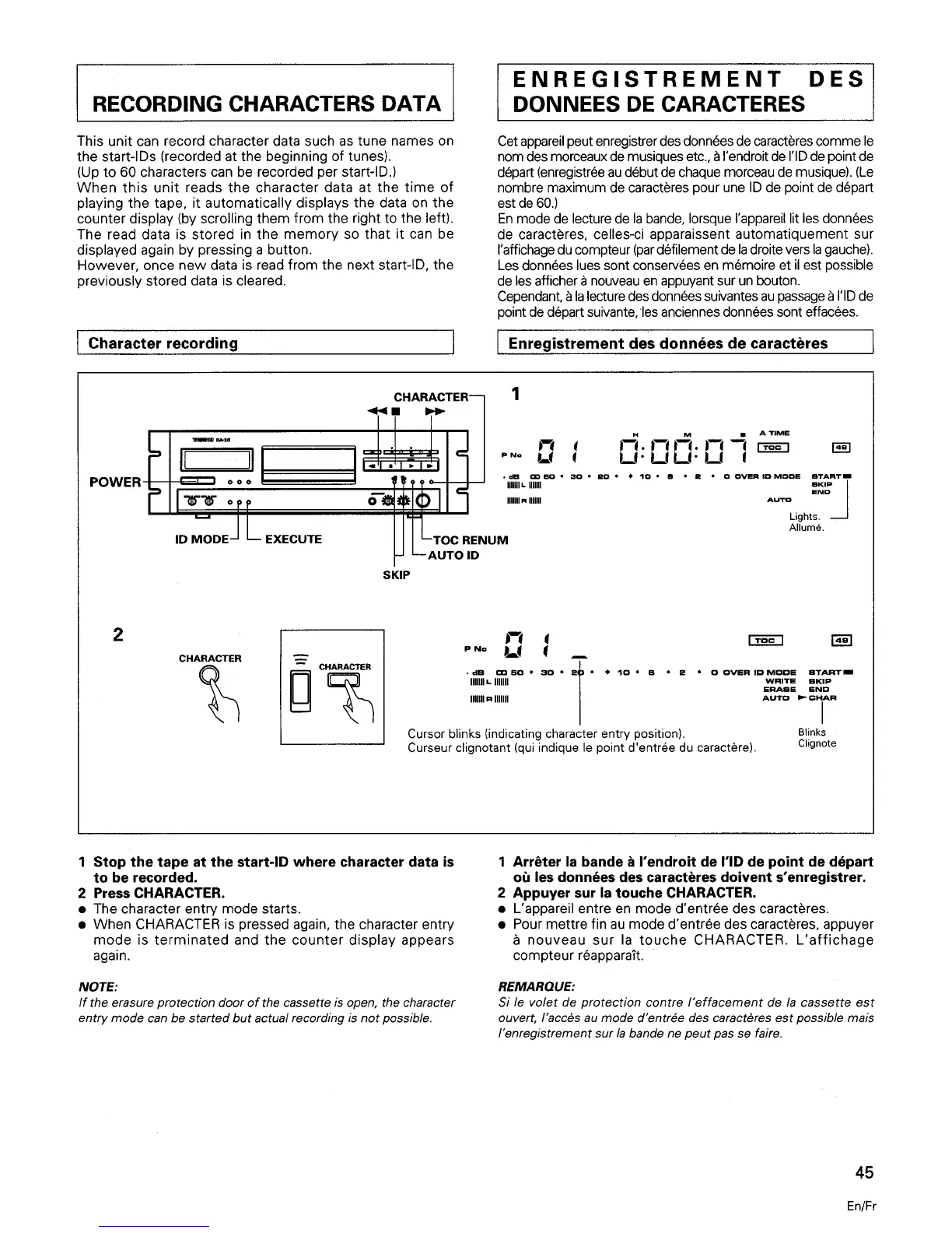 Tascam DA-20 - Recording Characters Data; Character Data Recording and Entry
