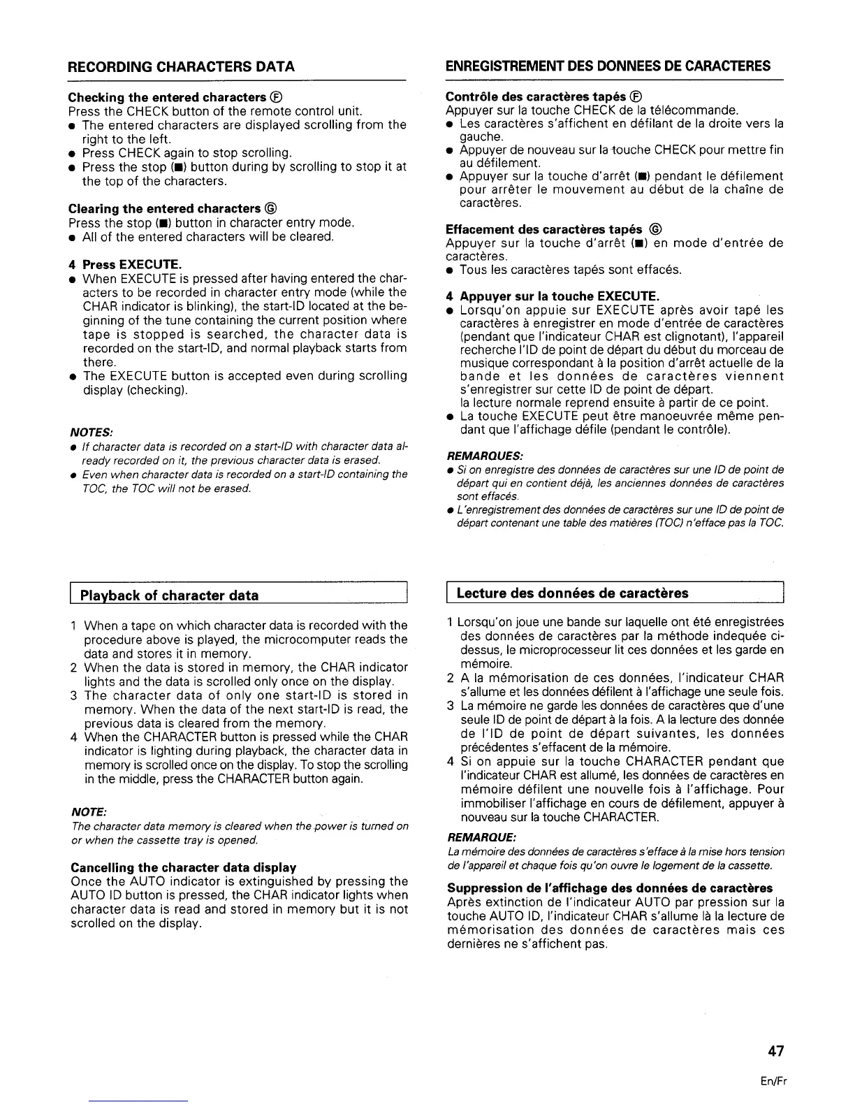 Tascam DA-20 - Managing and Playing Character Data
