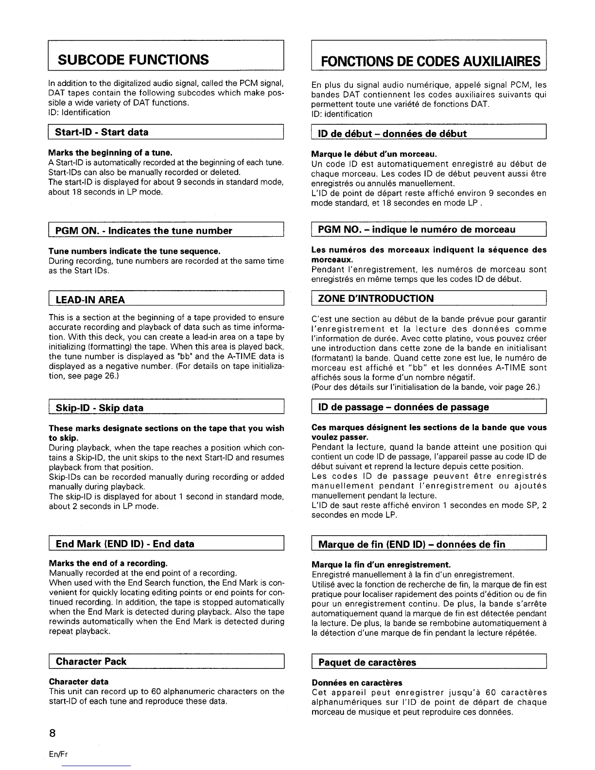 Tascam DA-20 - Subcode Functions; Start-ID and Tune Numbering; Skip-ID and End Mark