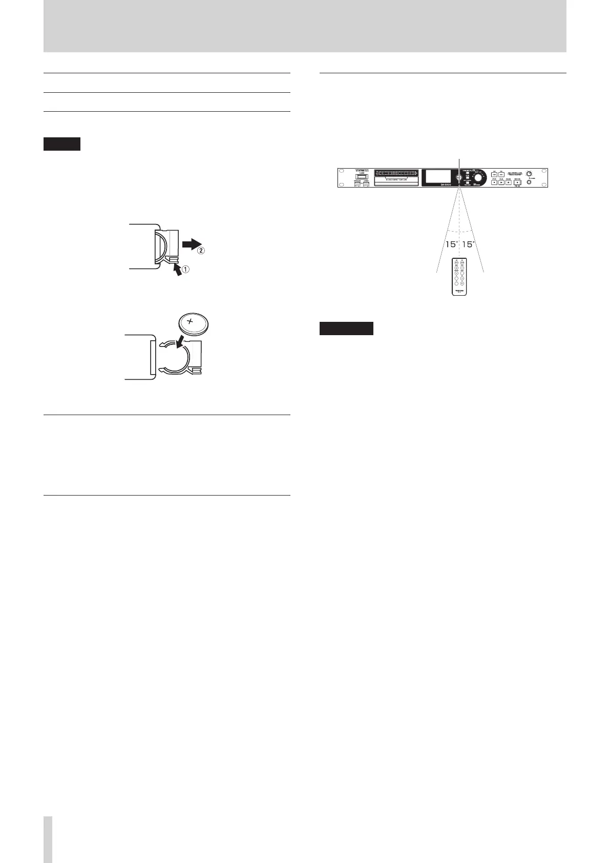 Remove the battery if you will not use the remote control for
