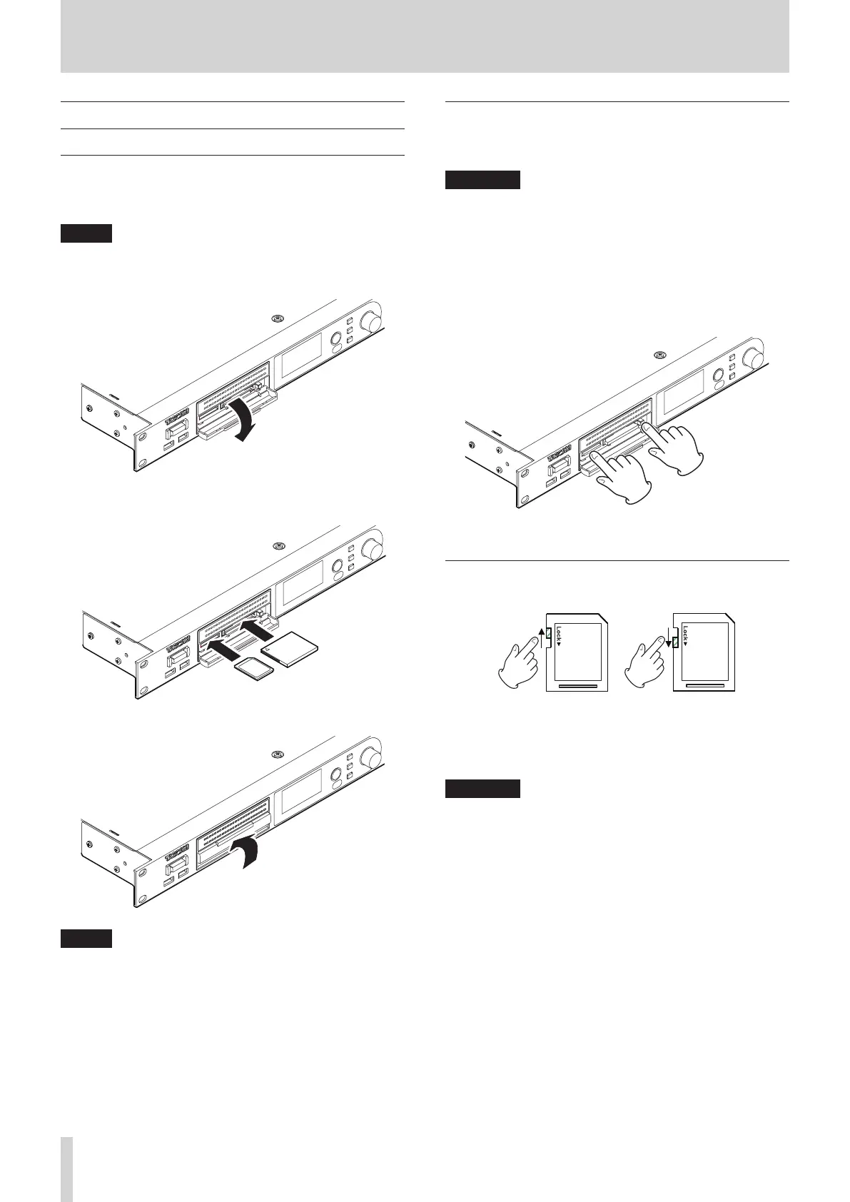 Never remove an SD or CF card when the unit is in use
