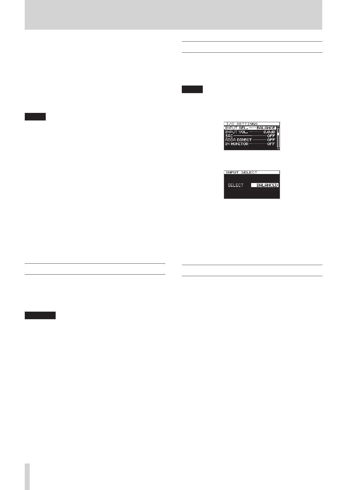 o PCM recording: BALANCED (default), UNBALANCED, AES/