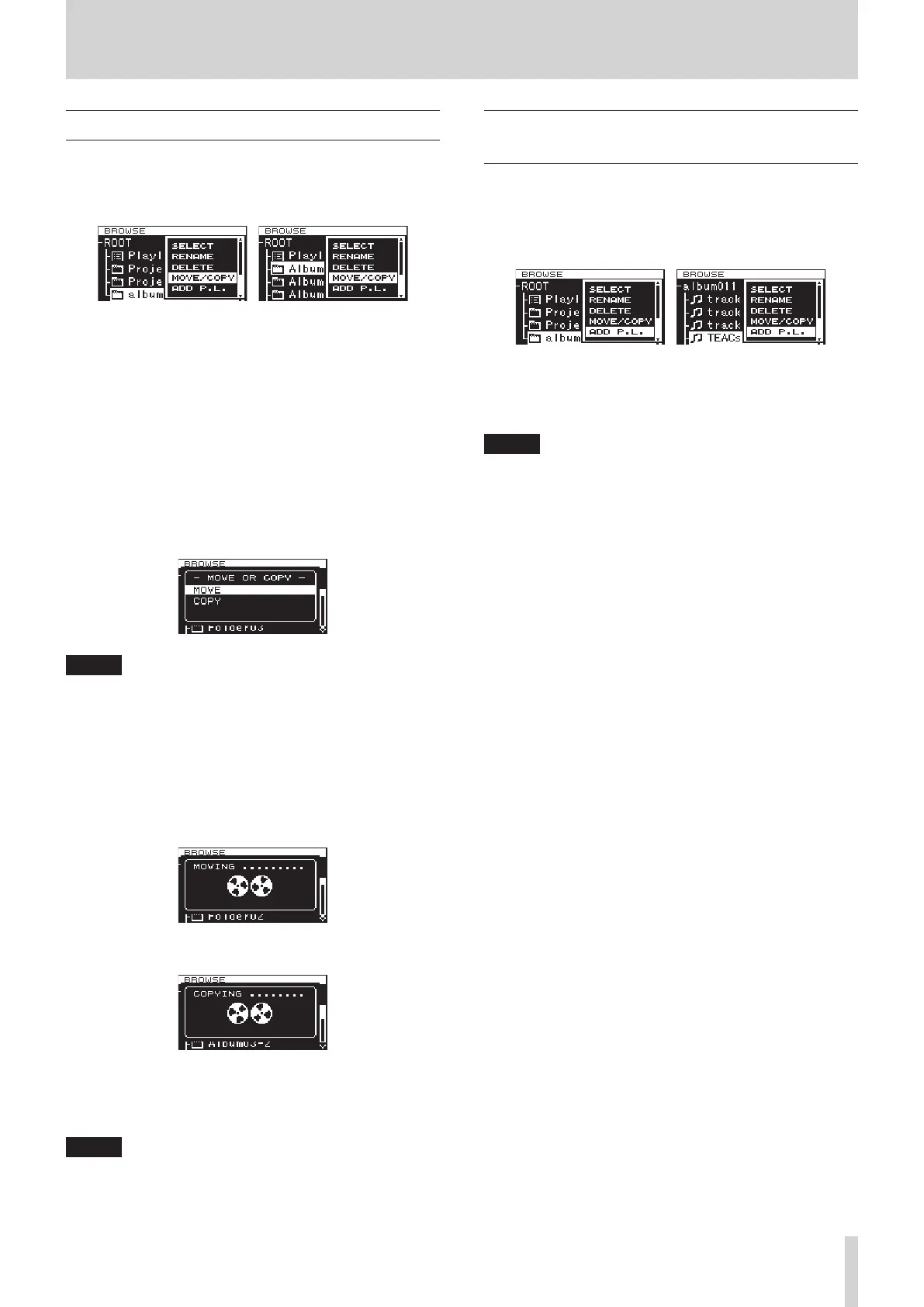 Depending on the selected item, “MOVING...” or “COPYING...”
