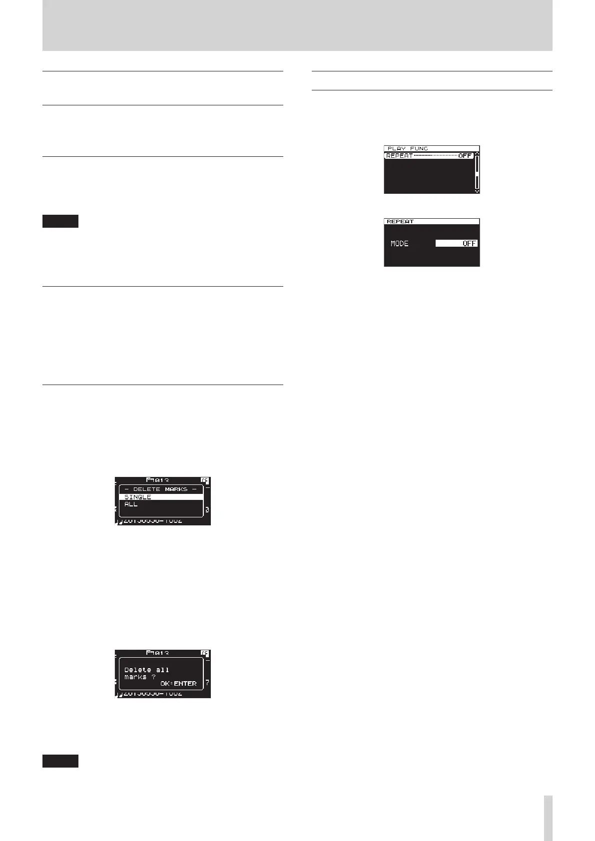 1. Move to the mark that you want to delete. (See “Locating to