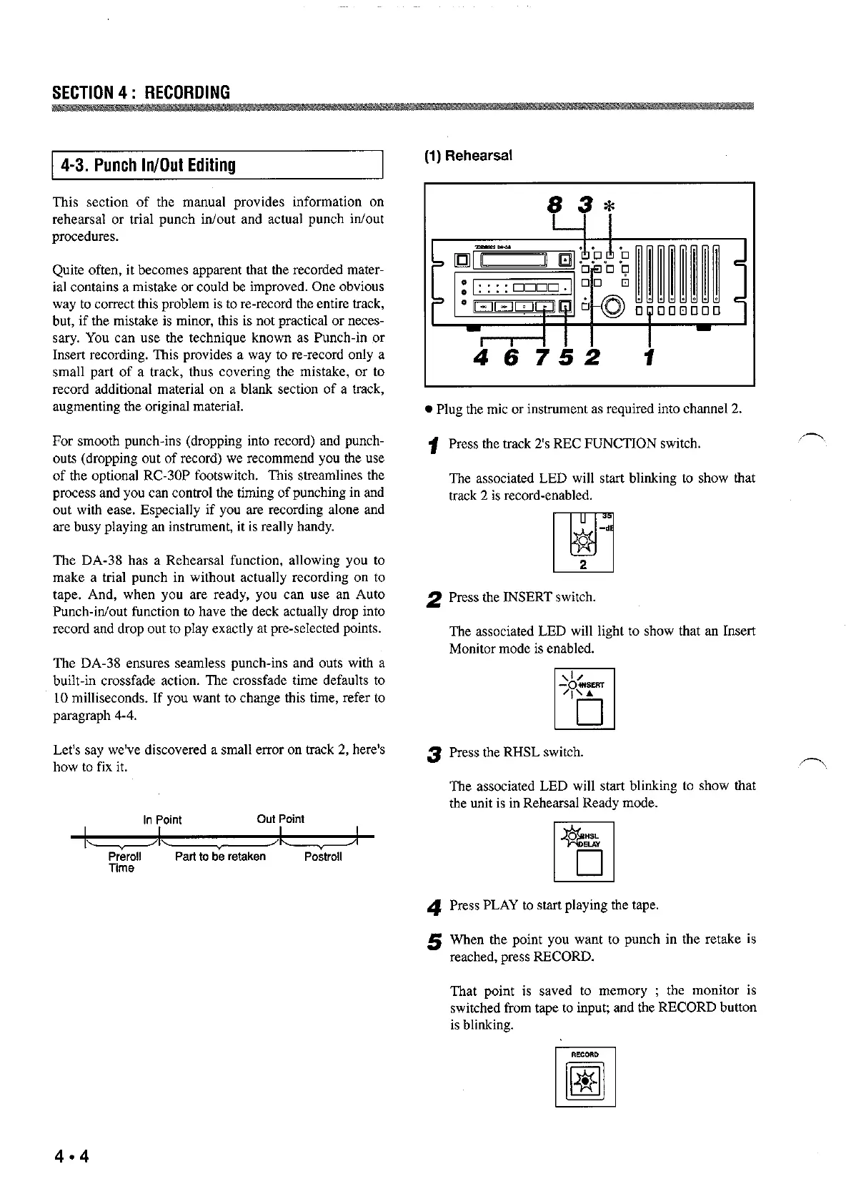 The DA-38 ensures seamless punch-ins and outs with a