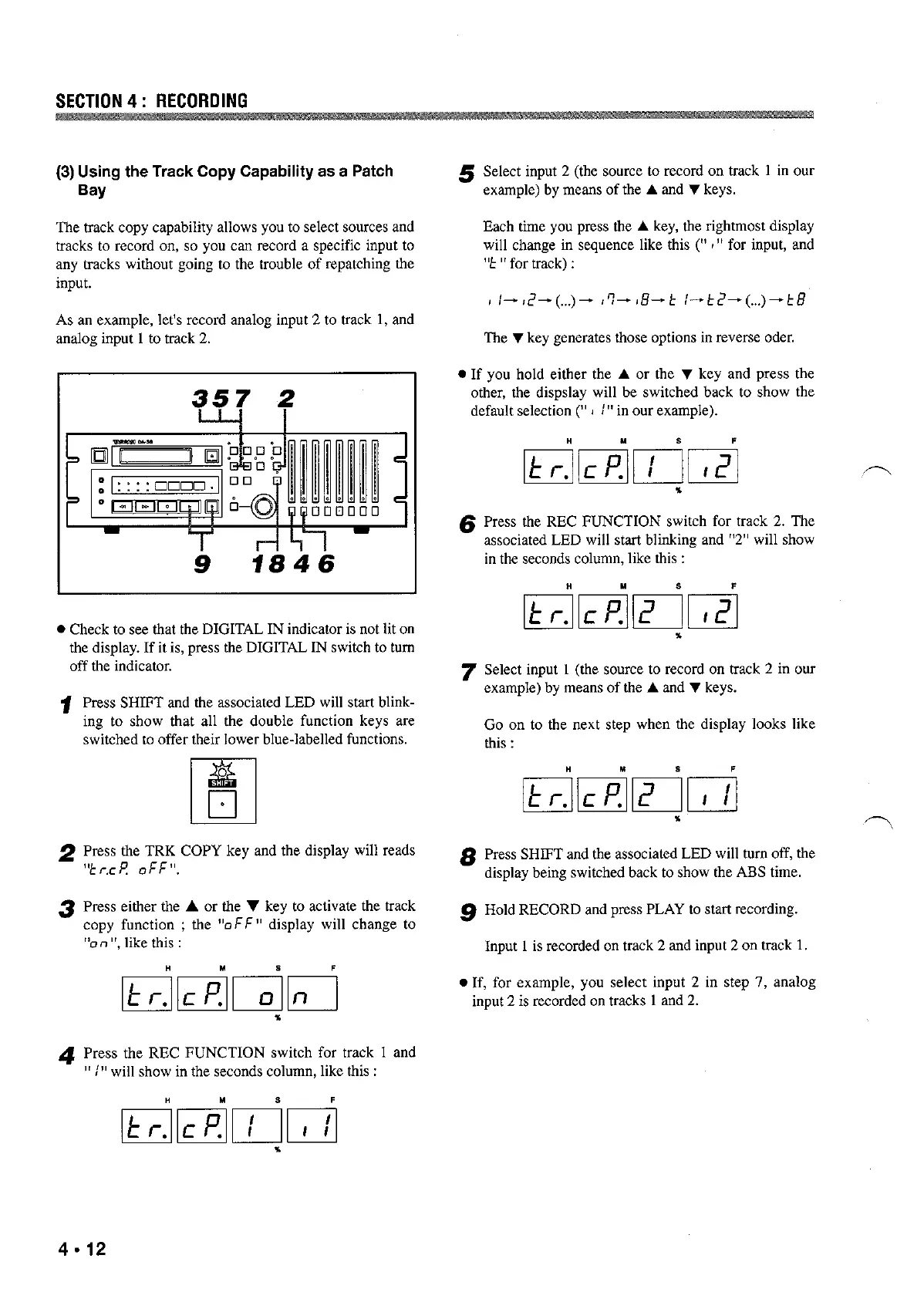 Input 1 is recorded on track 2 and input 2 on track 1.