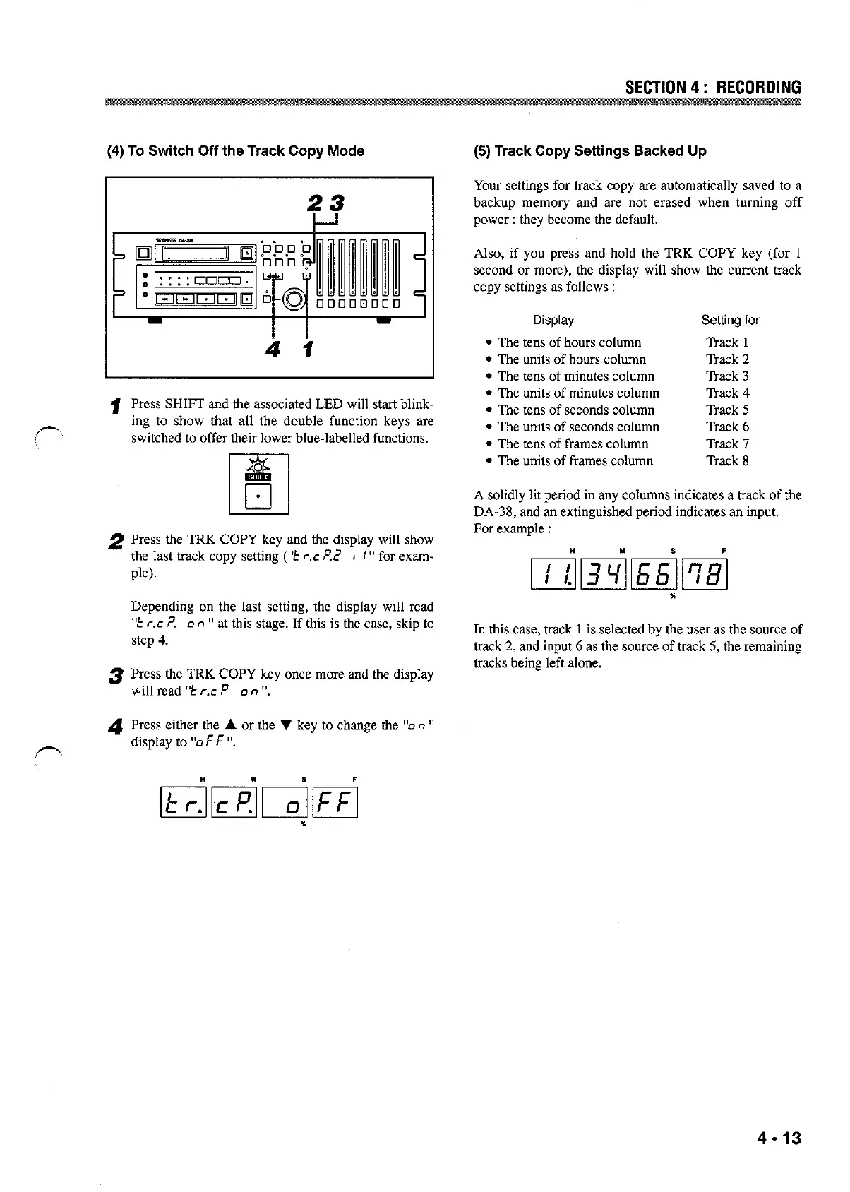 2 Press the TRK COPY key and the display will show