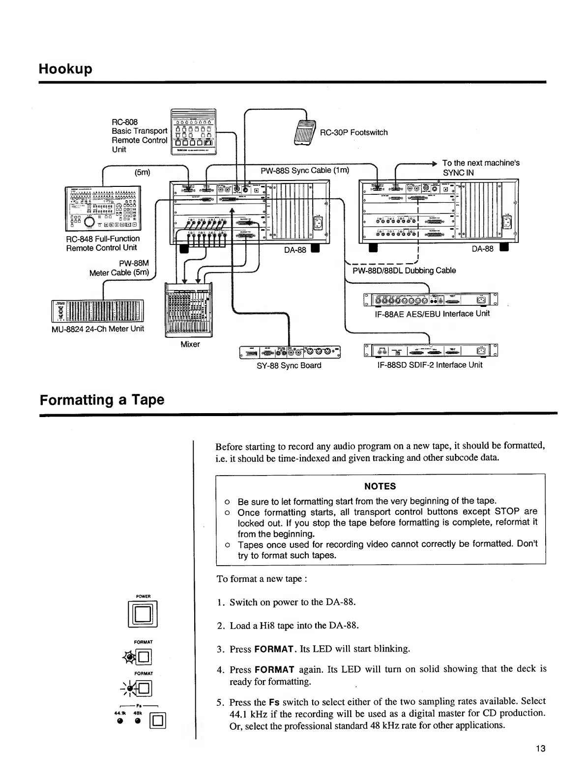 Tascam DA-88 - Hookup Guide; Formatting a Tape