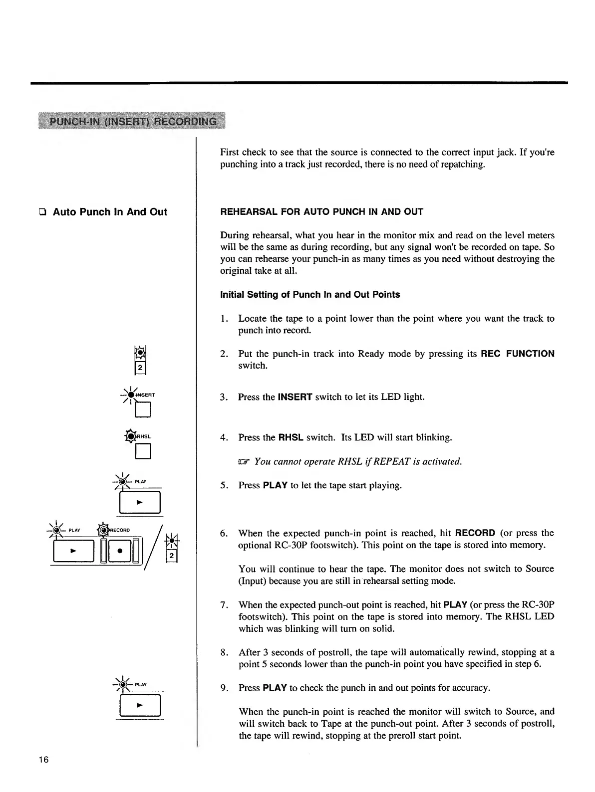 Tascam DA-88 - Punch-in Recording; Auto Punch In and Out