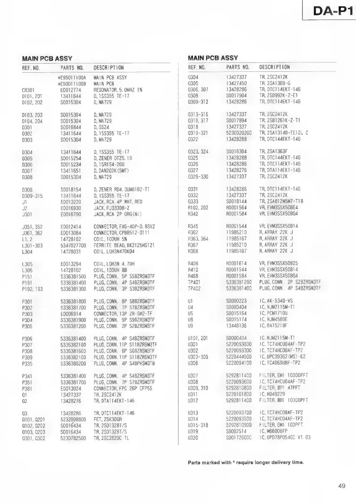 Tascam DA-P1 - PC Boards and Parts List; Main PCB Assembly Component List