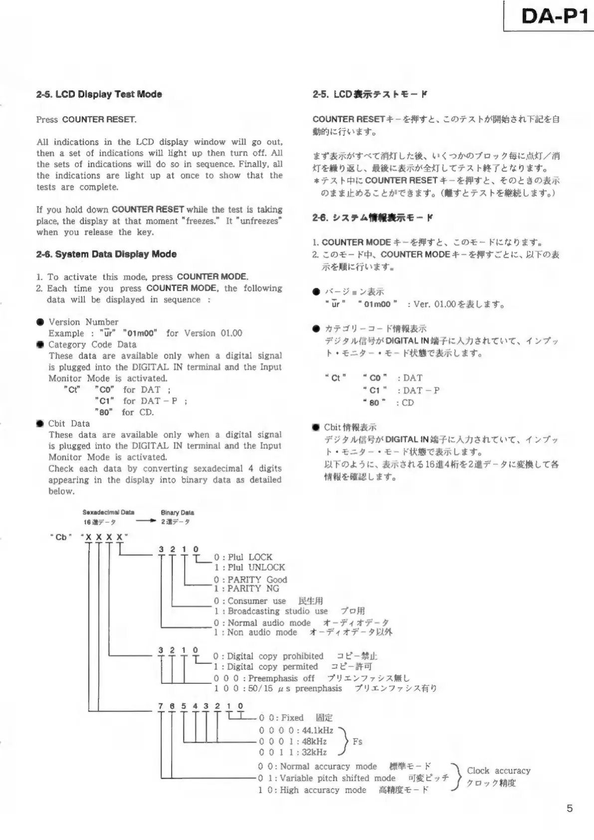 Tascam DA-P1 - Test Modes; LCD Display Test Mode; System Data Display Mode