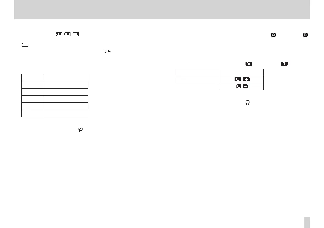 When a battery is being used, a battery icon shows the amount of power