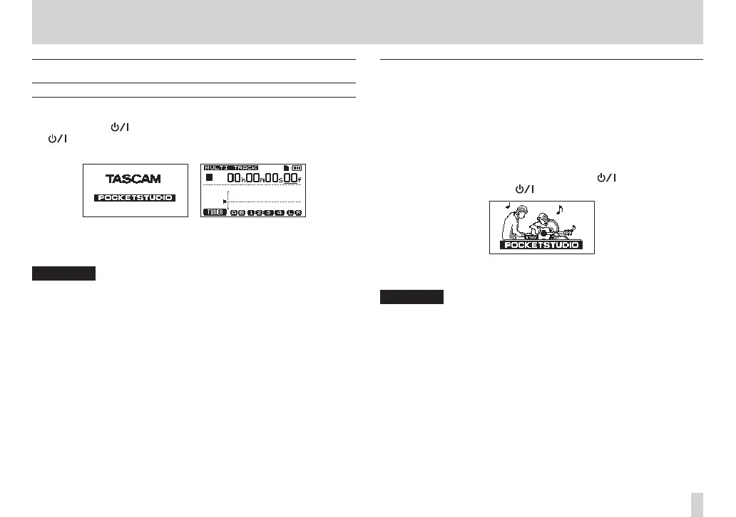 Press and hold the button on the top panel until “TASCAM” appears (or
