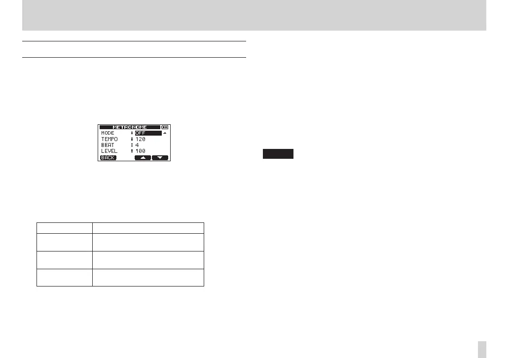 The metronome will now function according to the MODE setting made