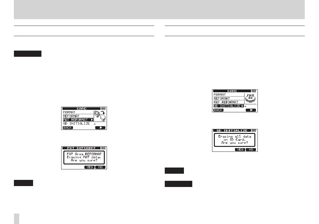 this unit. (See “Formatting SD cards” on page 79.)
