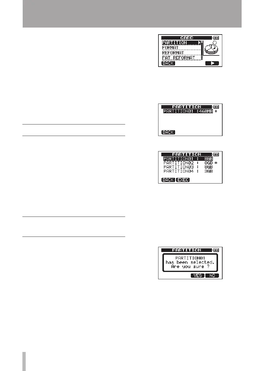 SD cards formatted by the unit are divided